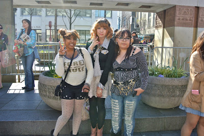 This event was to bring attention to the word "kawaii" and bring Japanese brands to America so that we can purchase them. Our event was outside so that we could ask people who were fashionable about what they feel about gyaru brands and what type of brands that they liked. Many of them loved Liz Lisa!! So hopefully Liz Lisa will come soon! This event wasn't just about gyaru, it was about any type of cute Japanese fashion such as Lolita, decora, cosplay, harajuku fashion and etc.